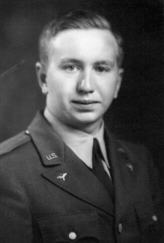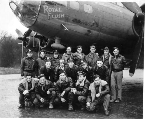 On the return from Munster, pilot Lt. Robert “Rosie” Rosenthal hums the tune of Artie Shaw’s “The Chant.” The music prompts the flight engineer in the top turret to hum along and calms the crew’s nerves before the Germans fighters pounce again. Only a few Forts of the 100th made it to the target to release their bombs. Of those, only one made it back to Thorpe Abbotts; the carnage in the air was so intense that one gunner said it was “like flying through an aerial junkyard.” Rosie really did take evasive maneuvers to keep the Germans from taking down his badly damaged bomber. With his tail gunner and both waist gunners wounded, Rosie twisted the Fort “all over the sky” until the Germans gave up.