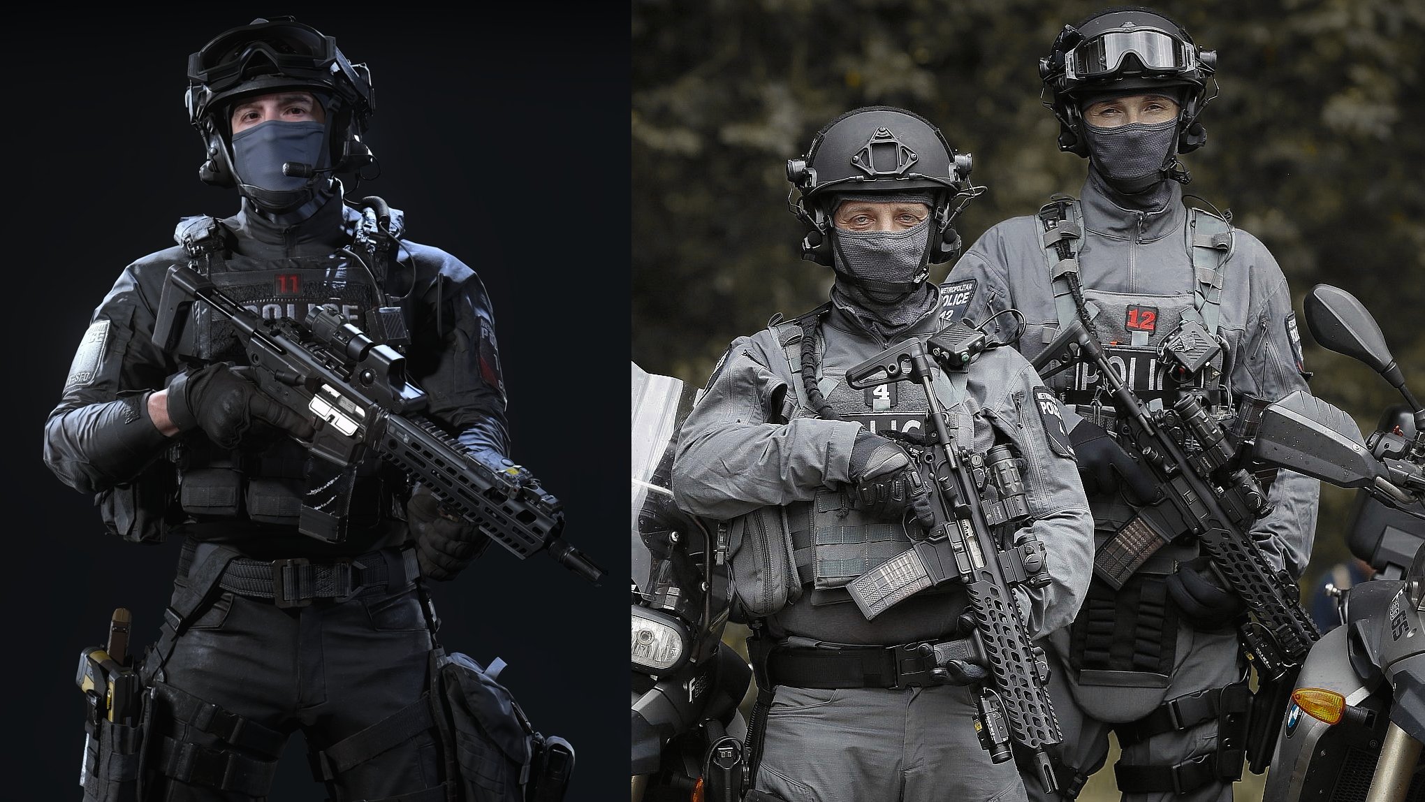 Carrying over from MWII (2022), reloads pickup from where they were interrupted. If the player’s character removes an empty magazine from their weapon, inserts a new one, but switches to their other weapon without chambering a round, the animation will continue with chambering a round after switching back to the first weapon. While this can be annoying to pro gamers on the multiplayer side, the mechanic adds a layer of realism to the campaign. Additionally, characters are appropriately armed based on their affiliation, unlike 2017’s Call of Duty: WWII where Nazis defending Normandy were armed with Soviet PPSh-41 submachine guns. Of note, British SFO police officers field SIG Sauer MCX (M13 in Call of Duty) rifles as they do in real life.