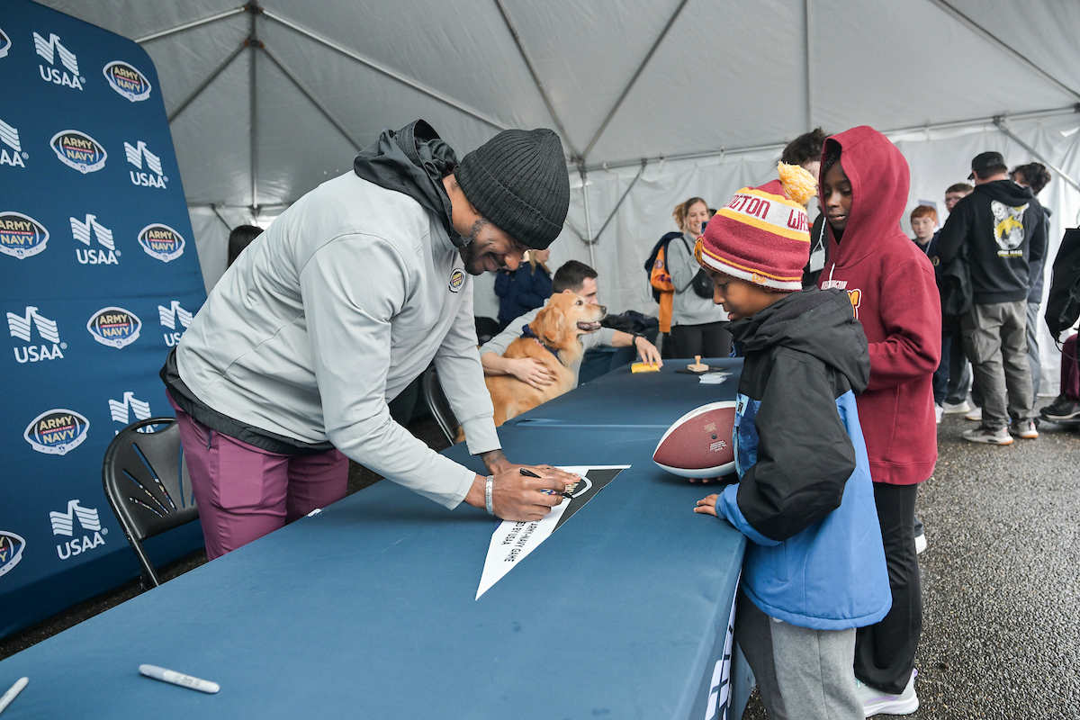 It’s the most wonderful time of the year: Army-Navy week! America’s best sports rivalry, the Army-Navy Game, returns to our nation’s capital for only the second time in the game’s 125-year history. Before the Black Knights of West Point and Midshipmen of the Naval Academy face off on the field, USAA (presenting sponsor of the Army-Navy Game), along with the Elizabeth Dole Foundation, and former Washington Commander’s quarterback, Heisman Trophy winner and all-around great guy Robert Griffin III (aka RGIII), brought the game to local kids and caregivers from military and veteran families at “USAA’s Heroes Huddle at the Army-Navy Game.”