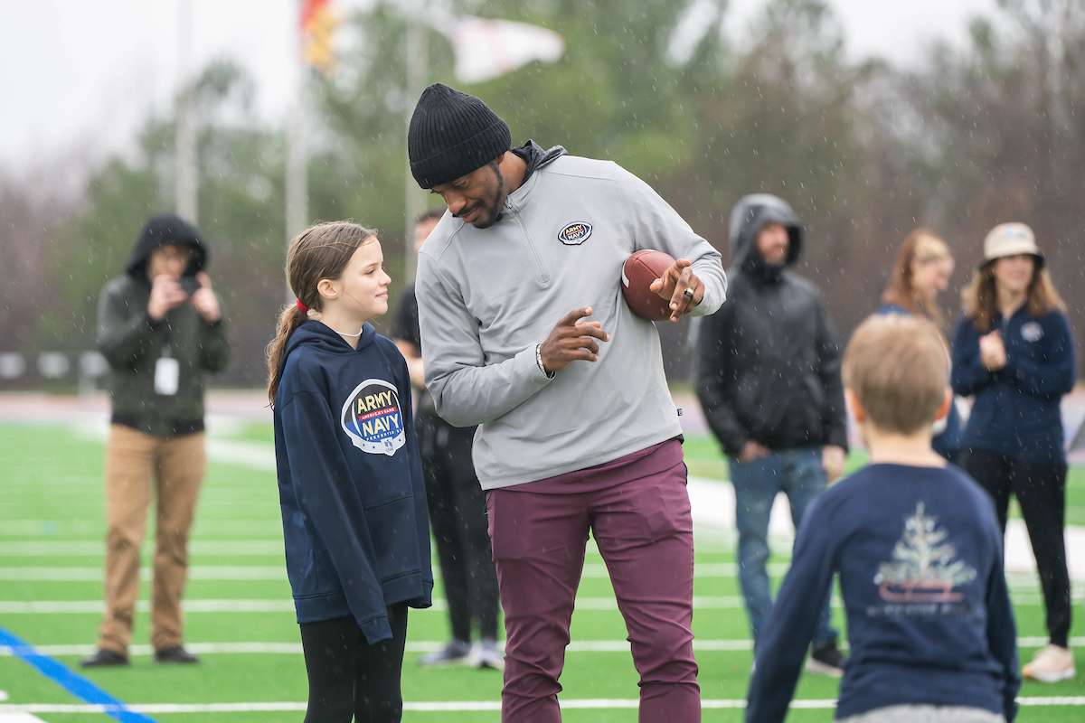 During this once-in-a-lifetime event, RGIII met with and mentored participating military kids from the Elizabeth Dole Foundation, many of whom help provide care to a veteran parent or grandparent. The local heroes tested their skills in a series of NFL Combine-style drills (40-yard dash, broad jump, three-cone shuttle, receiving gauntlet, and QB arm challenge) and enjoyed some friendly competition in this precursor community event to the 125th Army-Navy Game. Following the camp, the group got a VIP tour of Northwest Stadium as preparations are being finalized for America’s Game.