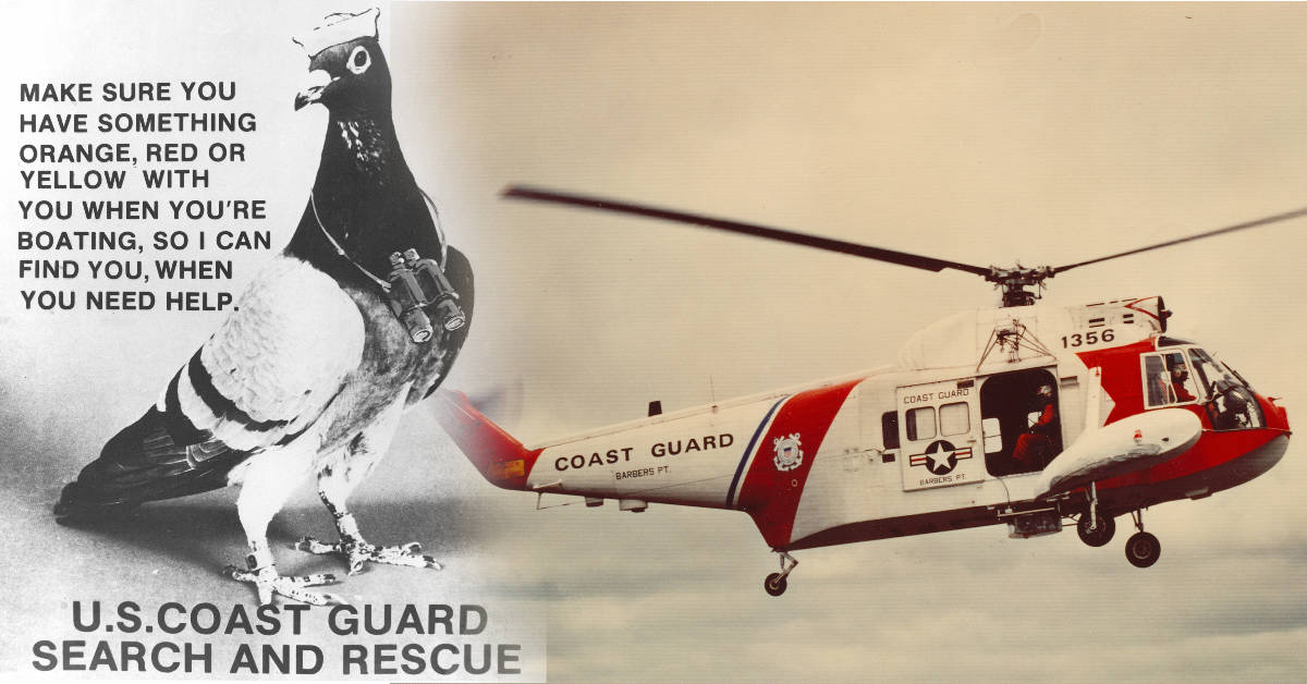 Back in the late 1970s and early 80s, the Coast Guard thought they had a better way to search for people lost in the ocean. They tested using pigeons affixed to the underside of helicopters.