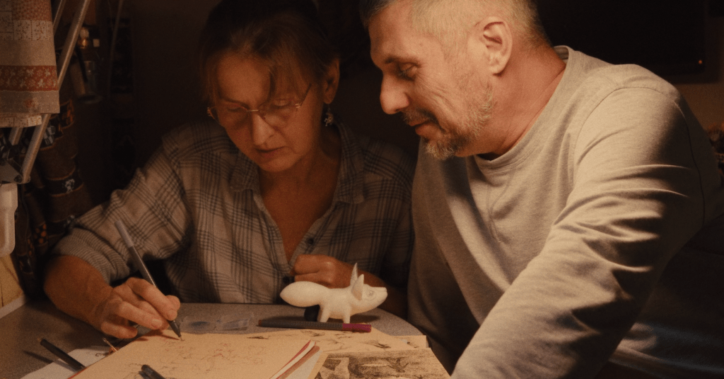 “Amidst the chaos and destruction of the brutal Russian invasion of Ukraine, three artists defiantly find inspiration and beauty as they defend their culture and their country. In a war waged by professional soldiers against ordinary civilians, Slava Leontyev, Anya Stasenko and Andrey Stefanov choose to stay behind, armed with their art, their cameras and, for the first time in their lives, their guns. Despite daily shelling, Anya finds resistance and purpose in her art, Andrey takes the dangerous journey to get his young family to safety abroad, and Slava becomes a weapons instructor for ordinary people who have become unlikely soldiers. As the war intensifies, Andrey picks up his camera to film their story, and on tiny porcelain figurines, Anya and Slava capture their idyllic past, uncertain present and hope for the future.”