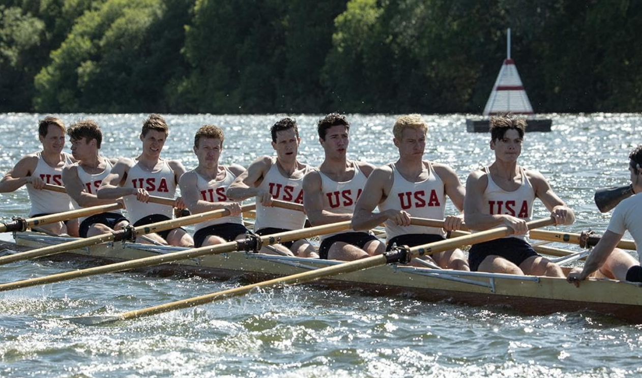 The movie features an experienced cast led by the superb direction of George Clooney. He gets the best performances from his cast and at the ideal moments throughout the film. Our main character is Joe Rantz, portrayed by the skilled and likable Callum Turner. Joel Edgerton plays the stern, tough and believable Al Ulbrickson, famous coach of the rowing team.