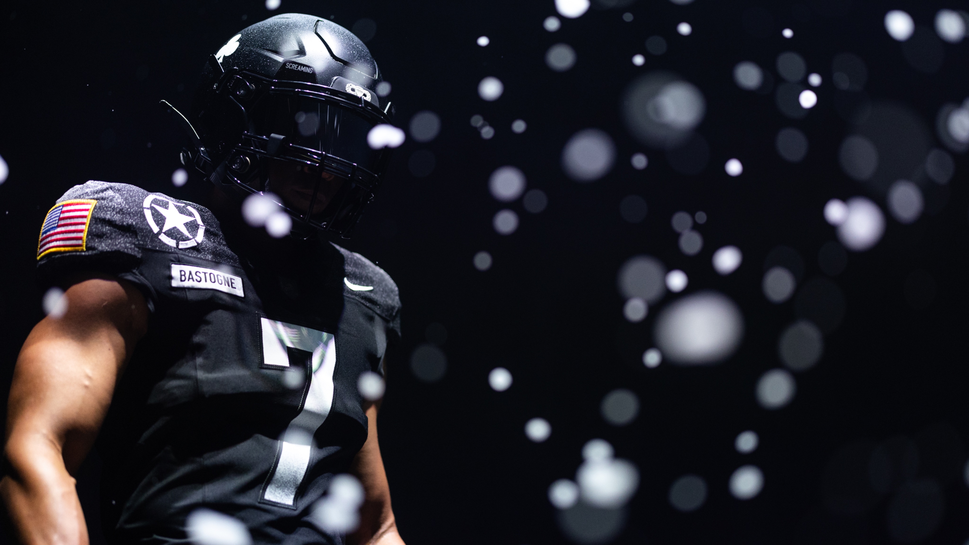 On November 18, 2024, Army struck first and revealed their uniforms for America’s Game. “Inspired by the 101st Airborne Division, we will honor the relentless fighting force of the #ScreamingEagles on Dec. 14,” Army Football posted to social media. The 2024 also marks the 80th anniversary of the Battle of the Bulge. Established in 1918, the 101st Airborne cemented its place in history during WWII. Paratroopers wearing the Screaming Eagle patch dropped into Normandy on D-Day and fought across the Netherlands during Operation Market Garden. Perhaps the unit’s most famous campaign was the Battle of the Bulge around Bastogne, Belgium, to which West Point’s 2024 Army-Navy Game uniform pays tribute.