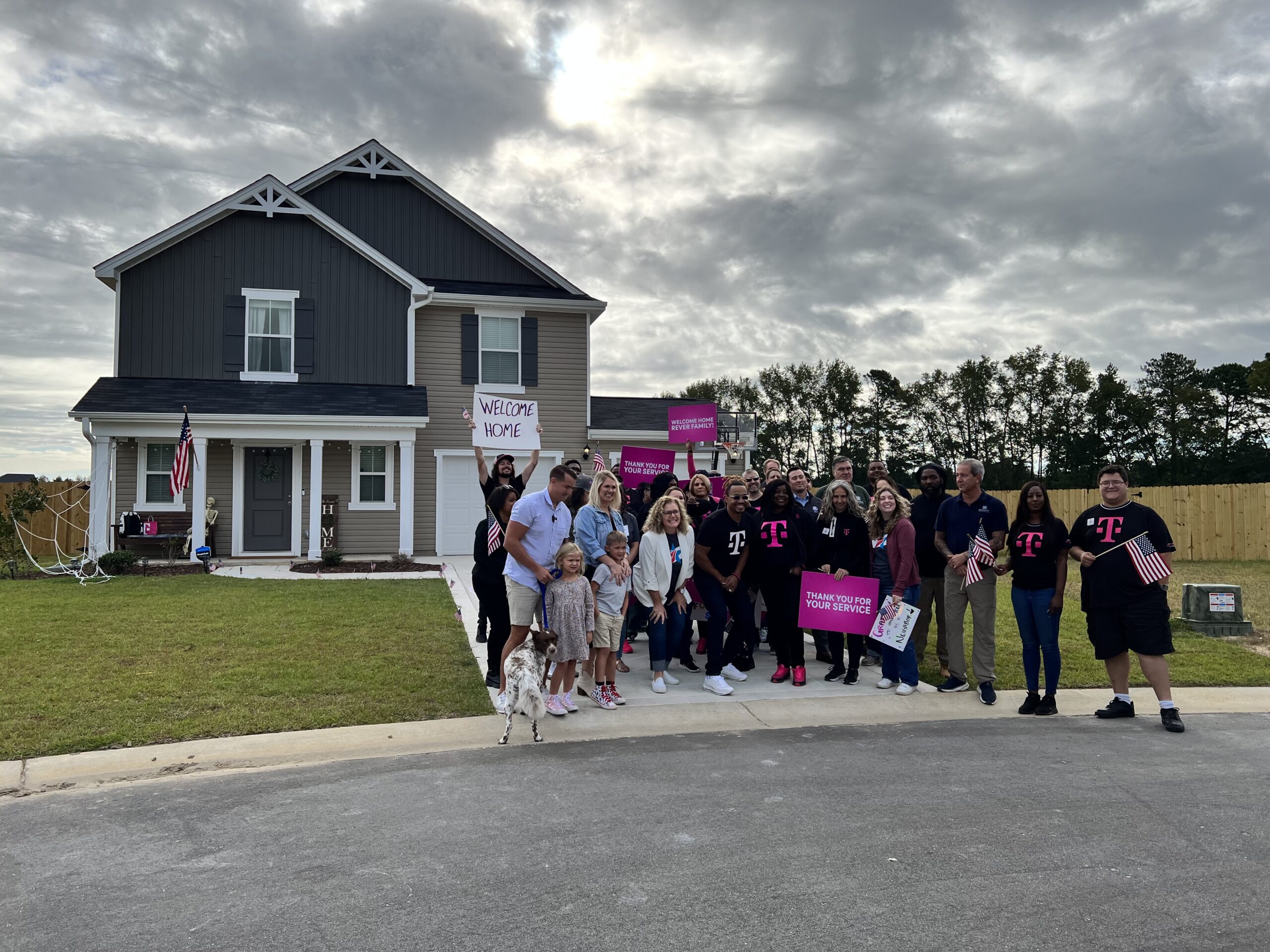 T-Mobile believes in serving those who serve, too. After revealing the home to the Rever family, the company presented BSF with a check for $100,000 to support many more military family makeovers. Following the makeover, spouses attached to Fort Liberty were invited for a coffee get-together down the road at Starbucks. Over 30 military spouses were treated to gift cards from T-Mobile and coffee on BSF.
