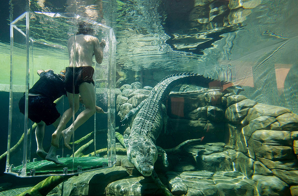 Visit Crocosaurus Cove: Located in the heart of Darwin, this attraction lets you get up close with Australia’s iconic saltwater crocodiles. You can even experience the “Cage of Death,” a thrilling dive with a croc from behind protective glass.