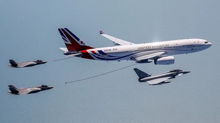 Britain provides the Rolls-Royce engines as well as the wings for the A330. The civilian airliner serves as the base aircraft for the A330 Multi Role Tanker Transport. Also operated by the air forces of Australia, France, Saudia Arabia, and Singapore, the A330 MRTT can transport passengers, patients, cargo, and fuel for aerial refueling. 14 MRTTs, owned by AirTanker Holdings Limited, are operated under lease by the British RAF; in RAF service, the aircraft has the Voyager KC2 or KC3. Voyager KC3 with registration ZZ336 serves as the primary air transport for the British royal family, prime minister, and other government ministers.