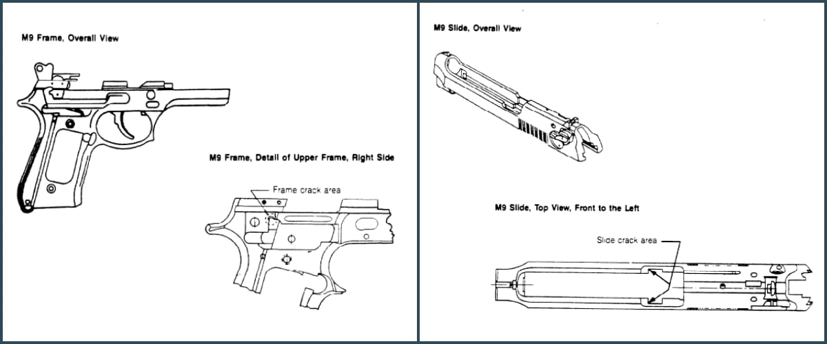 With the contract awarded, the Beretta 92F was adopted as the M9 and was put into the hands of America’s warfighters. However, the pistol soon started experiencing problems. Three reports came from the Navy of operational M9 slides cracking, or even breaking in half and hitting the shooter in the face as it reciprocated. As a result, Naval Special Warfare ditched the M9 and adopted the SIG Sauer P226 as the Mk25. The Army responded to the incidents by issuing safety notices on the M9, calling for slides to be changed out more regularly and for Beretta to redesign the pistol.