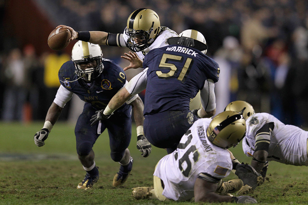 And just like that, Army hikes the ball and Navy linebreaker Matt Warrick breaks through the line, tackling the quarterback for a loss of yards, effectively ending Army’s drive and Doan’s hopes and dreams of taking back the coveted Army/Navy bragging rights.