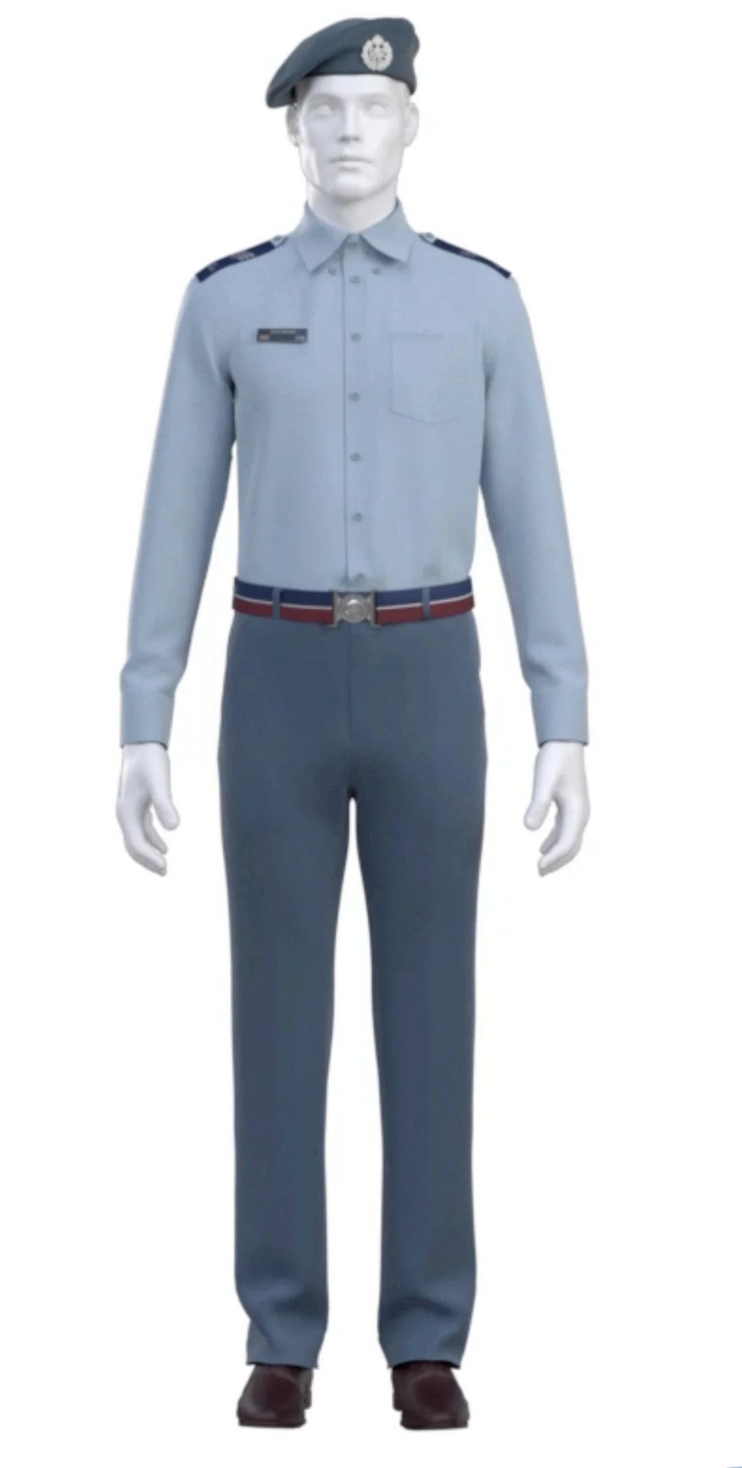 Meanwhile, draft images of the proposed service dress uniform appear slightly more traditional while still evoking a certain sci-fi aesthetic. Both male and female versions retain the beret from the utility uniform and feature a long-sleeve button-down shirt with collar and shoulder ranks. While both versions also utilize an RAF belt, the male uniform depicts trousers and shoes while the female version has a skirt and heels with an option for trousers and shoes.