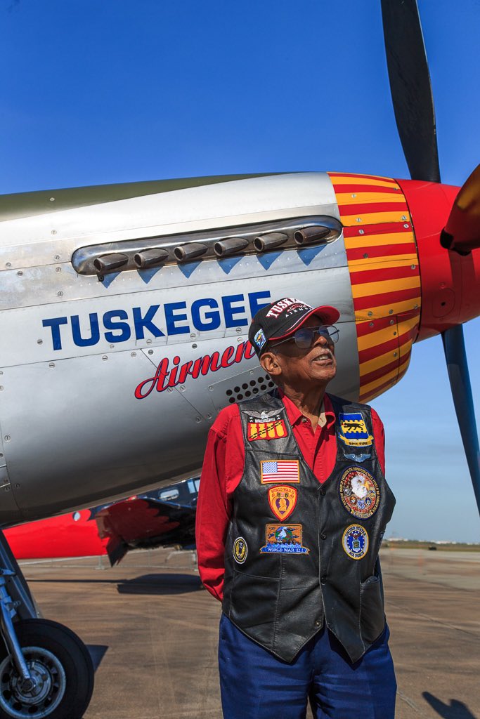 In April 1943, Jefferson got his wish. He received orders to report to Tuskegee Army Air Field, Alabama and begin flight training. After completing the training, Jefferson was commissioned and received his wings. He was assigned to the 332nd “Red Tails” Fighter Group at Ramitelli Airfield where he flew the P-51 Mustang. With the 332nd, Jefferson flew bomber escort missions over Europe. The fighters also attacked ground targets on low-level missions.