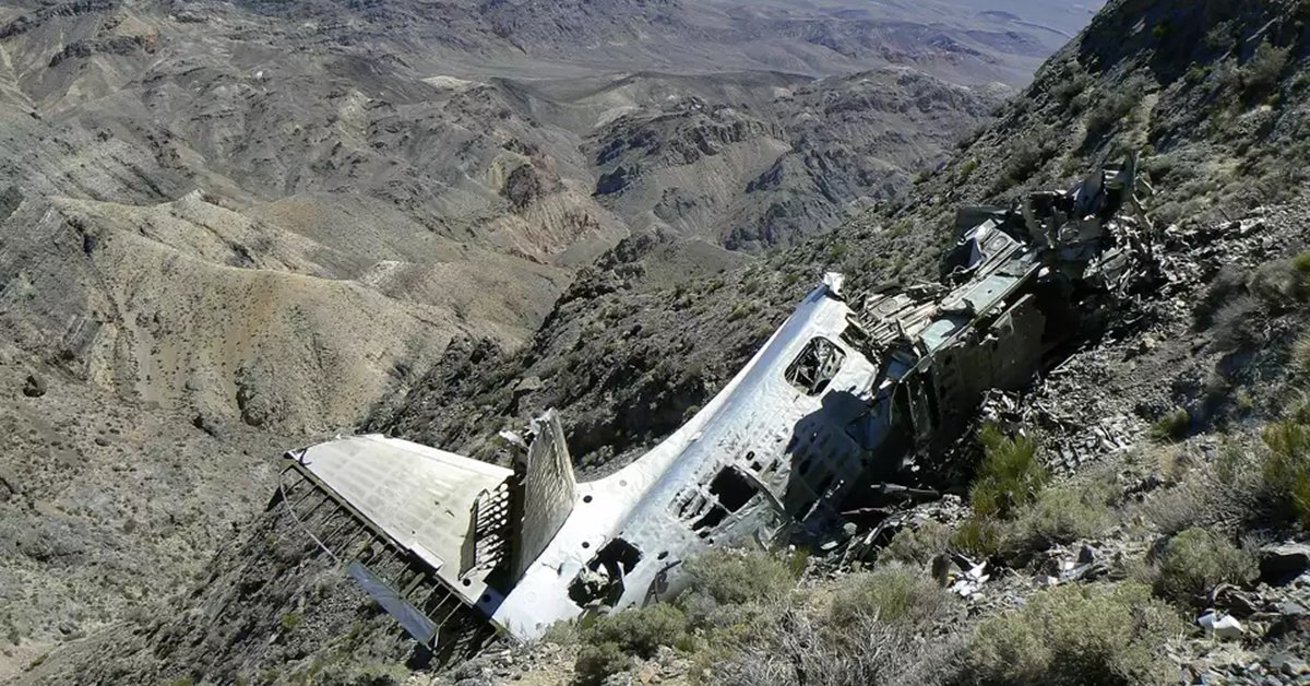 So they bailed. As the men descended out of harm’s way, the plane scraped a summit, clipped a ridge, and came to rest on a mountain in the western part of Death Valley.