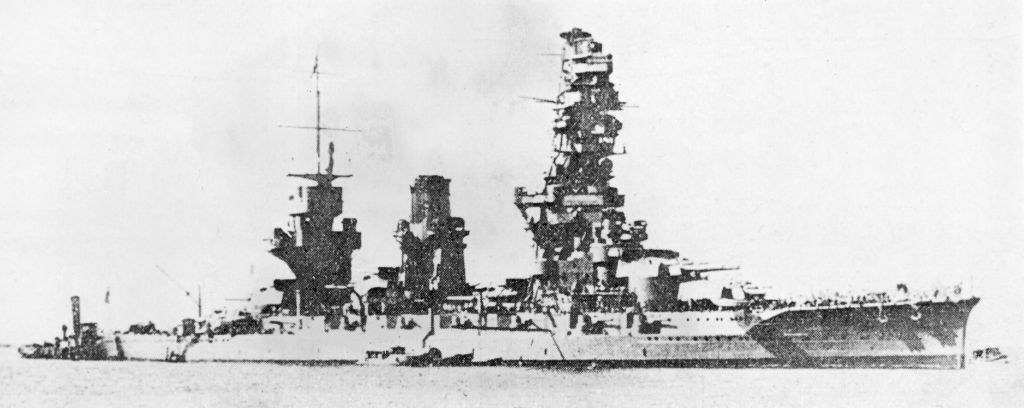 The Japanese force consisted of two large battleships, a heavy cruiser, and four destroyers. And there was a second force behind them with three cruisers and seven destroyers.