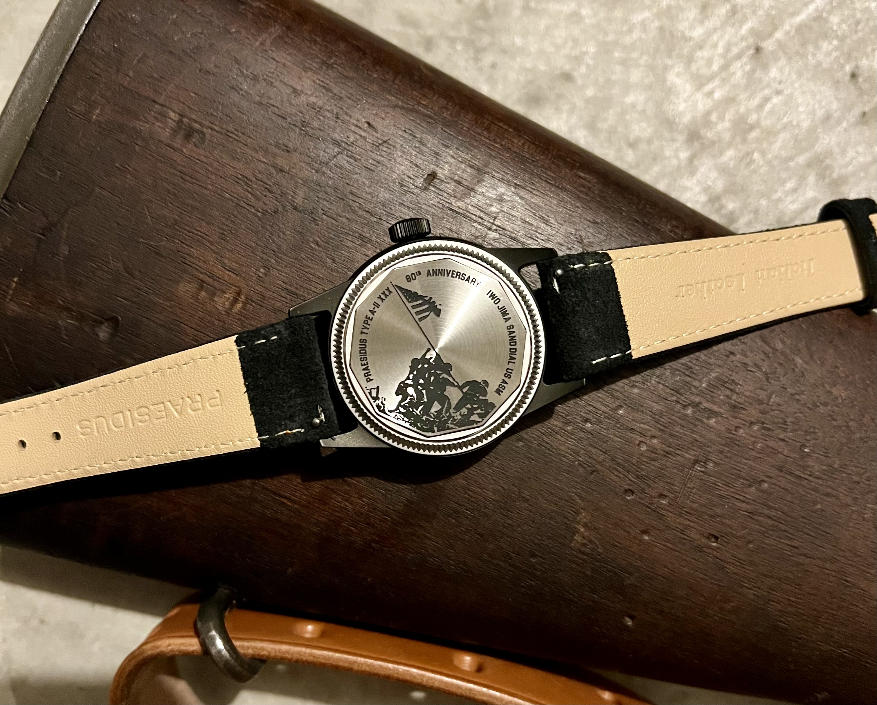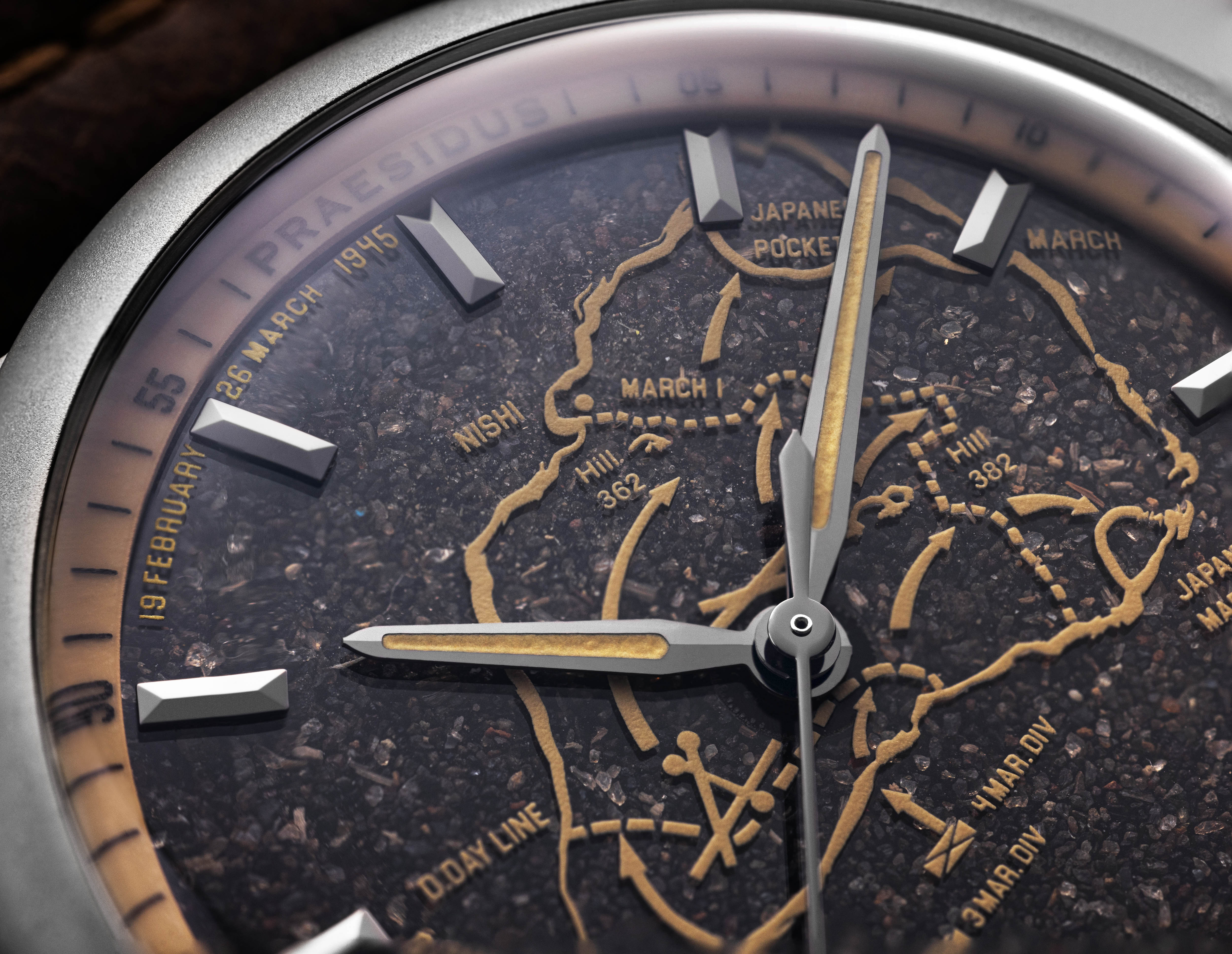 With Iwo Jima under the control of the Japanese Self-Defense Forces, access to Iwo Jima is heavily restricted. Outside of military access, civilian access is mainly limited to organized tours and memorial services. With genuine volcanic sand from the sulphur island, the Praesidus Iwo Jima 80th Commemoration A-11 watches offer a rare chance to own a piece of history.