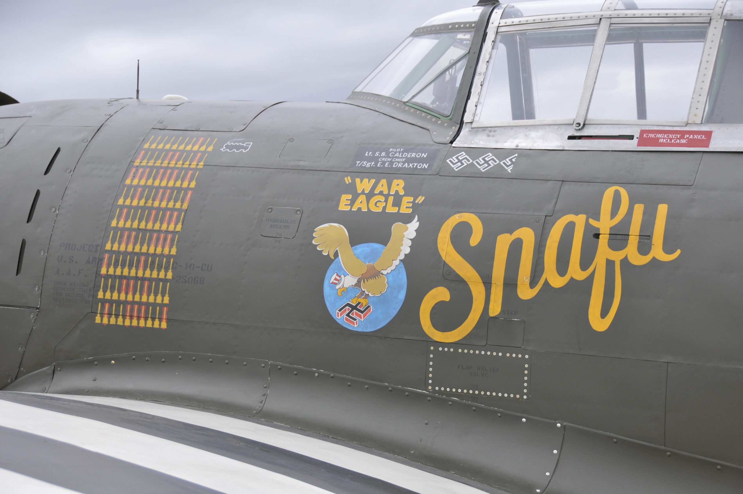 The Thunderbolt entered U.S. Army Air Force combat service in the European Theater, in both Britain and Italy, in 1943. It was a large and rugged, but also an agile fighter. Armed with eight .50 caliber machine guns, it was a worthy opponent for the German Messerschmidt Me-109 and Focke Wulf Fw-190. Unfortunately, its range was insufficient to fully protect American heavy bombers during daylight missions over continental Europe. The American P-51 Mustang, powered by a British Rolls Royce Merlin engine., would ultimately achieve the magic combination of range, armament, and dogfighting ability to fulfill the bomber escort role.