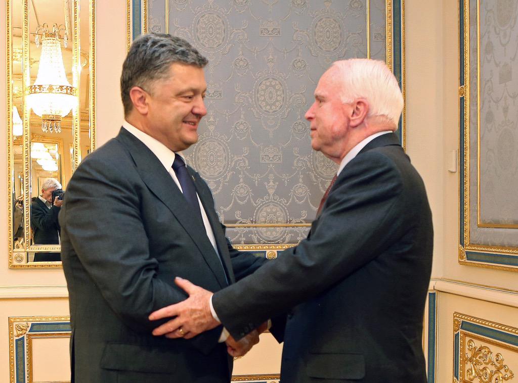 In December 2016, McCain returned to Ukraine and met with then-Ukrainian President Petro Poroshenko as well as Ukrainian troops holding the line against pro-Russian forces. “I send the message from the American people – we are with you, your fight is our fight and we will win together,” McCain told Ukrainian reporters during his visit. “To Vladimir Putin – you will never defeat the Ukrainian people and deprive them of their independence and freedom.” This sentiment was echoed by Sen. Lindsey Graham, who joined McCain in Ukraine and called for a stronger stance against Putin.