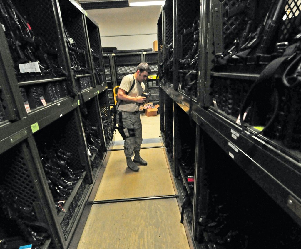 Serialized gear isn’t kept in service members’ living spaces for a good reason: we’d play with it all the time. Instead, it’s housed in the dusty and dirty armory. That said, rarely is the serialized gear as clean as you’d like it to be with all the lubricant and filthy rags also stored there.