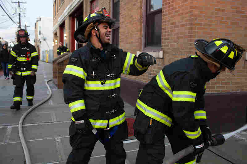 Actually, there is a relatively big difference: Firefighters get to enjoy a workout while on duty.