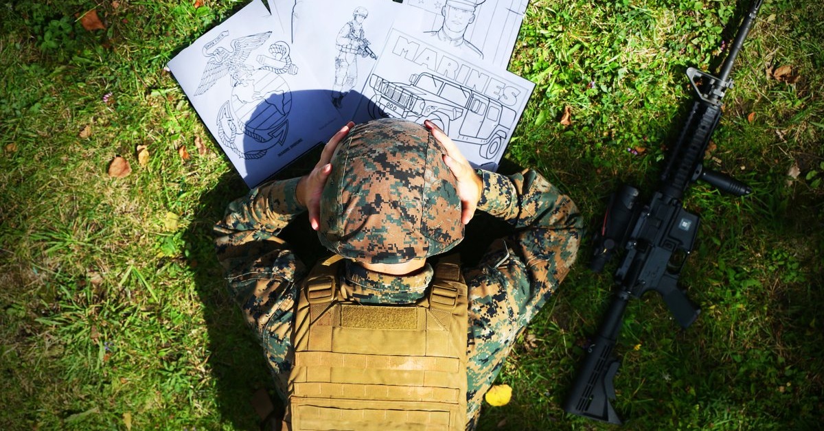 “Oh, you’ve got a keen eye for landscapes and geometry? Perfect! Draw a grim reaper with, like, two M-4s in his hands. Oh, cartooning is more your thing? Great! Add some fire behind his skull because we’re badasses.”