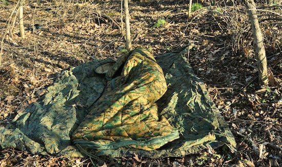 No shelter? No problem. If you have two packs and two poncho liners, you’re good to go. In fact, the more infantrymen, the more elaborate the structure you can construct by tieing them together. The woobie comes equipped with lashings on each corner and the sides, allowing for creative architecture.