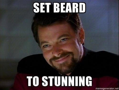 How many beards do you see on Star Trek? Any show in the series. Go ahead and look – it’s not many. When you do see them, most of the time, they’re only for flag officers. Meanwhile, Riker grew his out almost immediately. He sure as hell wasn’t going to wait ’til he had a DD-214.