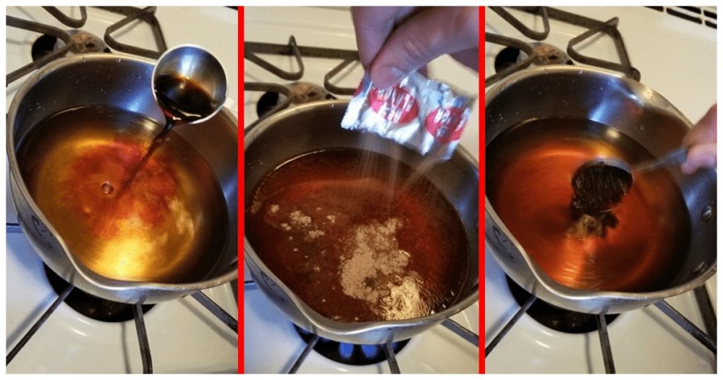 Add all liquid ingredients along with the ground ginger, lemongrass, and provided flavor pack into the saucepan. Place on a stove at high heat and stir with a wooden spoon until everything is dissolved.