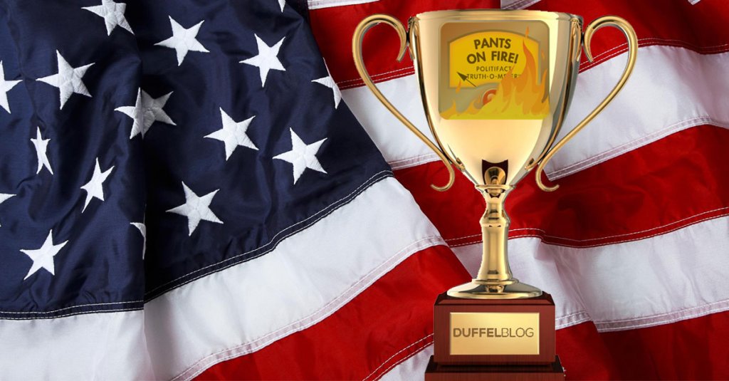 On Nov. 16, Duffel Blog held its head up high as the “The American military’s Most Trusted news source” was given the dubious honors of being ranked as “Pants on Fire” by Politifact. The award was bestowed upon them after their in-depth analysis of Bowe Bergdahl wandering off during his court-martial.