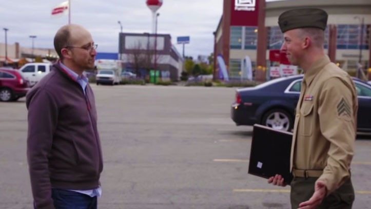 With the look and feel of many familiar homecoming videos, the video hilariously illustrates a very awkward meeting, if something like this ever did occur. Interestingly enough, the actor who portrays Brundage is a Marine veteran, according to The Marine Times.