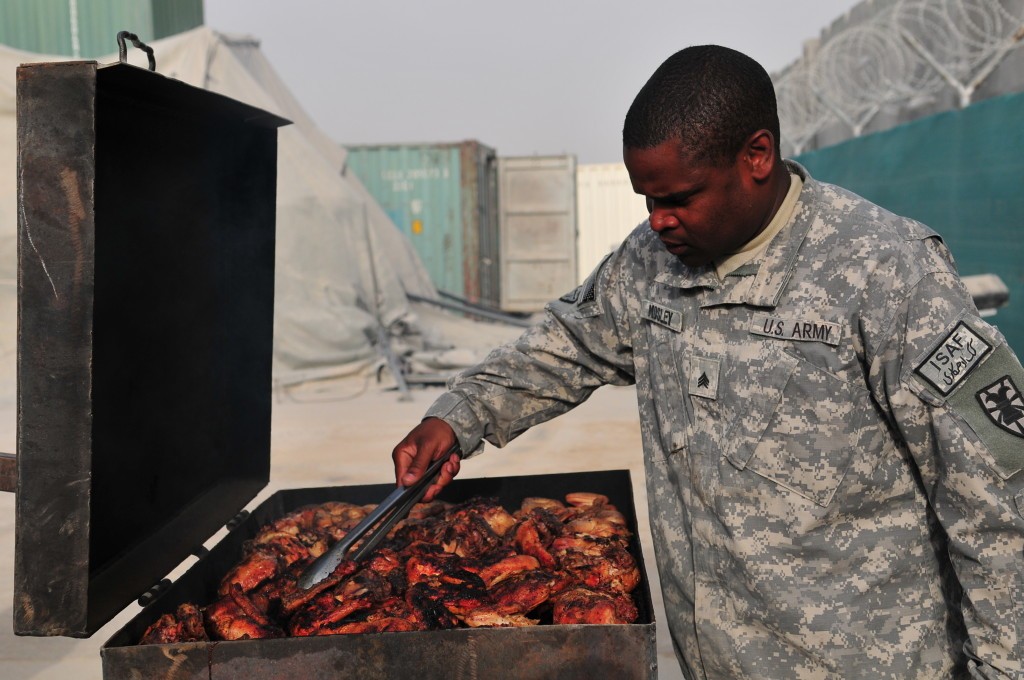 Nothing comes between a man and a perfectly-grilled steak. Not even enemy fire.