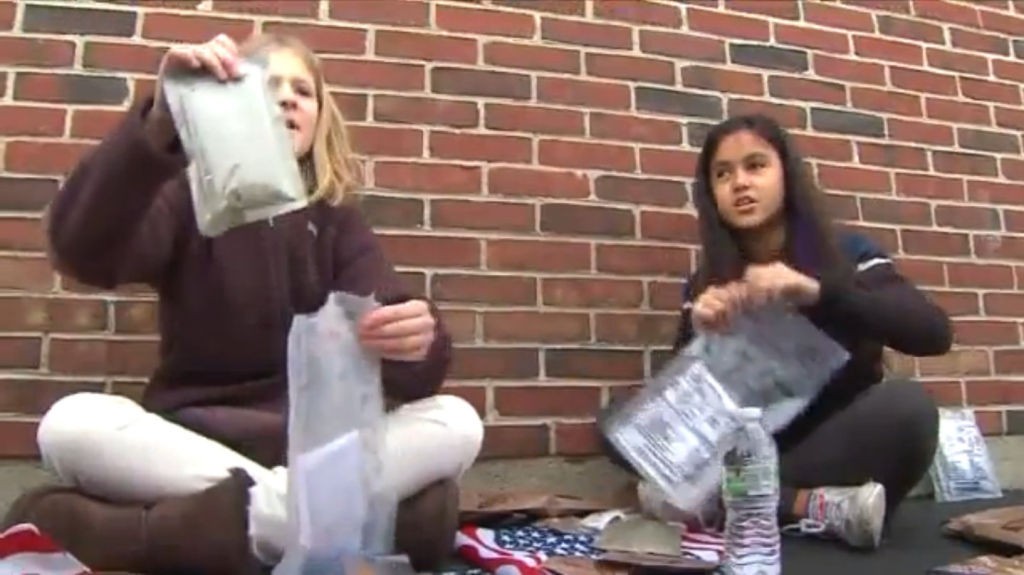 A local news crew was there when a group of middle schoolers got their first taste of MREs at Caruso Middle school in the Chicago suburbs, and it turns out they don’t really like them either.