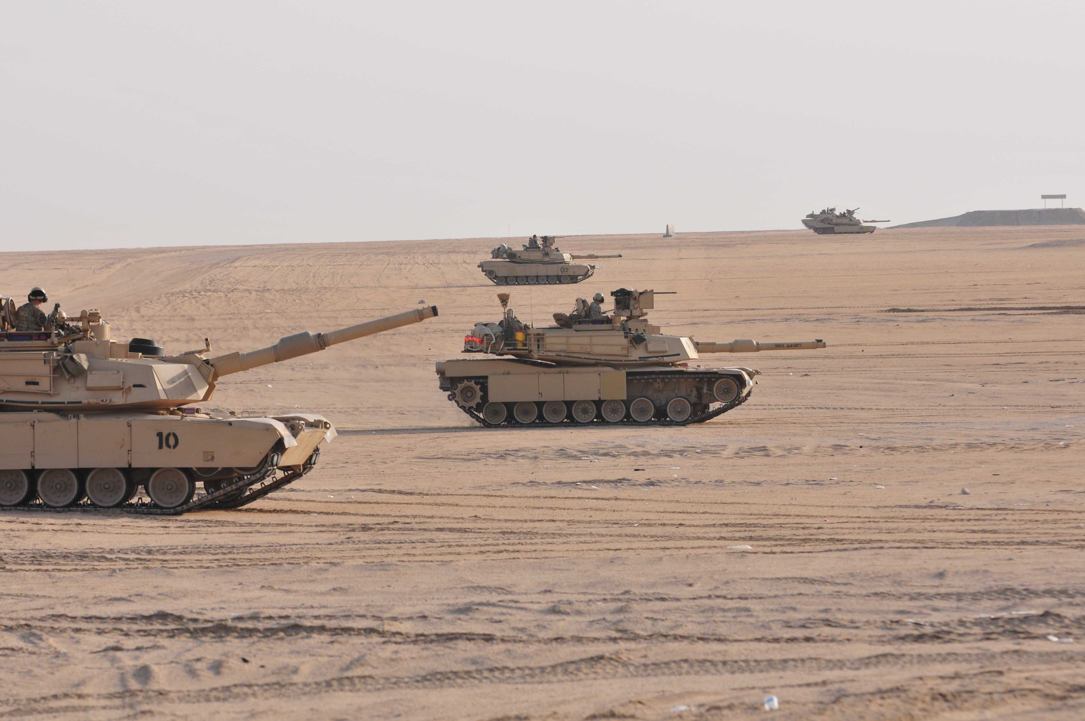 M1A2 Abrams Main Battle Tanks move to engage targets during a joint combined arms live-fire exercise near Camp Buehring, Kuwait Dec. 6-7, 2016. (U.S. Army photo by Sgt. Aaron Ellerman)
