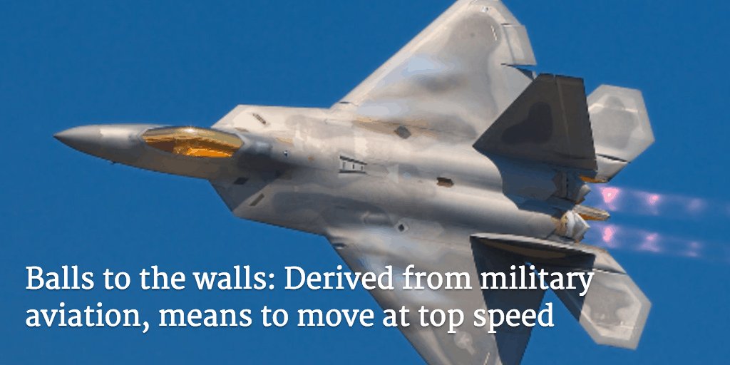 From military aviation where pilots would need to get their aircraft flying as fast as possible. Their control levers had balls on the end. Pushing the accelerator all the way out (“balls out”), would put the ball of the lever against the firewall in the cockpit (“balls to the wall”). When a pilot really needed to zoom away, they’d also push the control stick all the way forward, sending it into a dive. Obviously, this would put the ball of the control stick all the way out from the pilot and against the firewall.