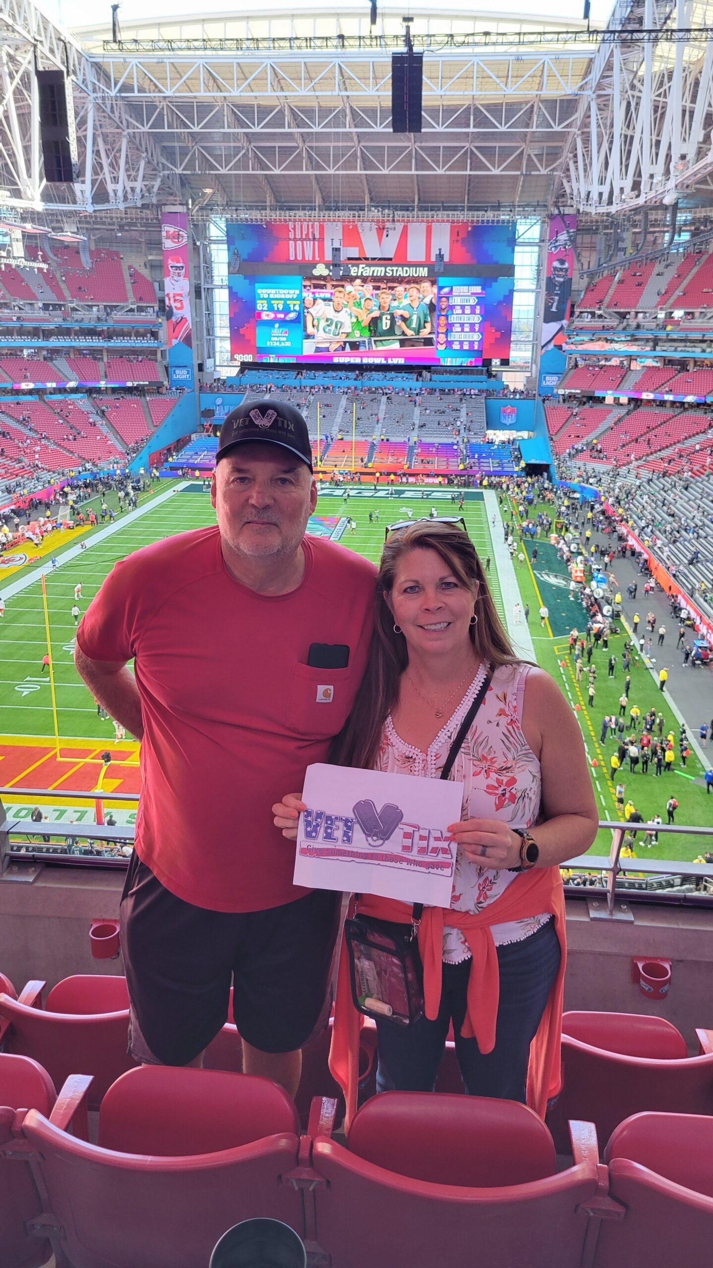 In 2023, Vet Tix was able to send 8 of its members and their guest to the big game: the Super Bowl. Specifically, Super Bowl LVII, to watch the Kansas City Chiefs take on the Philadelphia Eagles. It wasn’t just a memorable game for the Vet Tixers who went; it was a milestone for Vet Tix.
