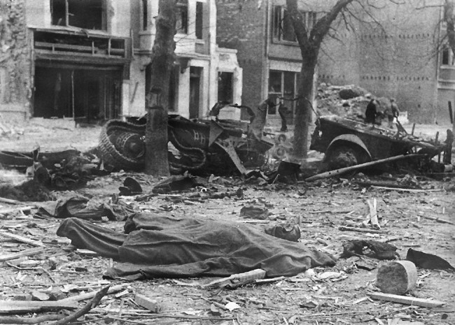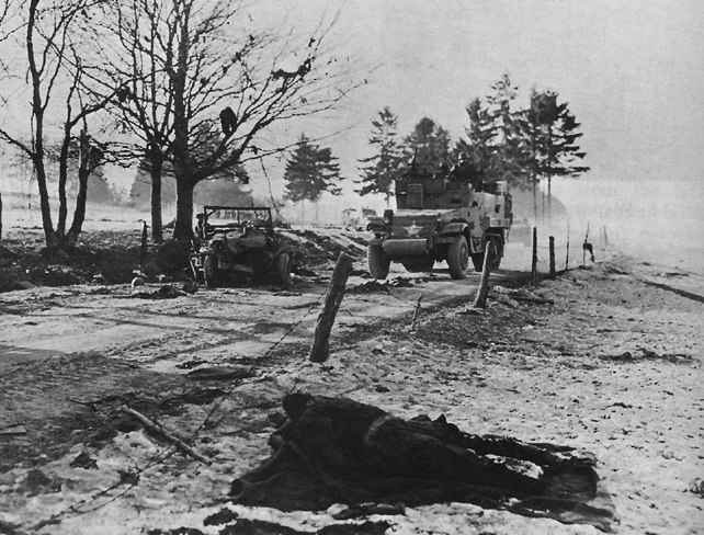 17. As more Allied troops were sent to reclaim the lost territory in Jan. 1945, they were forced to pass the remains of those already killed.