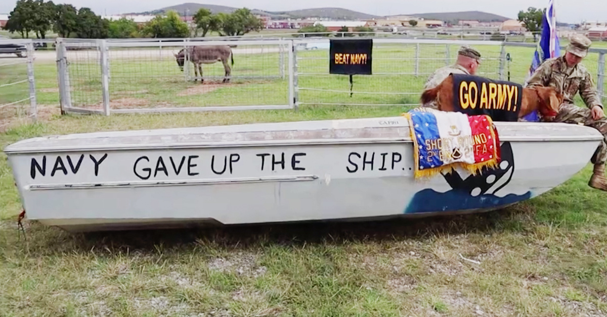 But Army-Navy Game spirit videos are a good break from the continuous mission. Show your spirit appropriately and never blow up a Navy effigy without trained Army explosives experts or artillery fire mules on site.