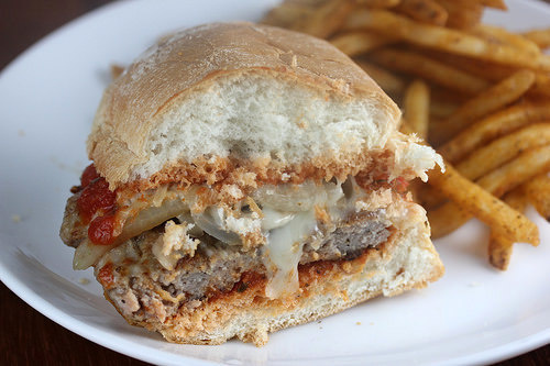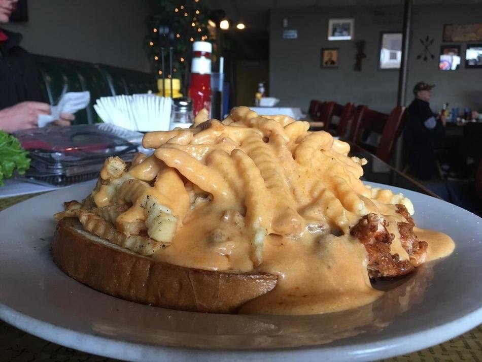 What’s under all those fries? A sandwich, of course. Where Pittsburghers put their fried potatoes on their sandwiches, over in Abraham Lincoln’s hometown, sandwiches are smothered in them. If you’re a fan of comfort food, you”ll love this open-faced ground-meat sandwich on a piece of Texas toast, topped with fries, and smothered in a creamy cheese sauce.