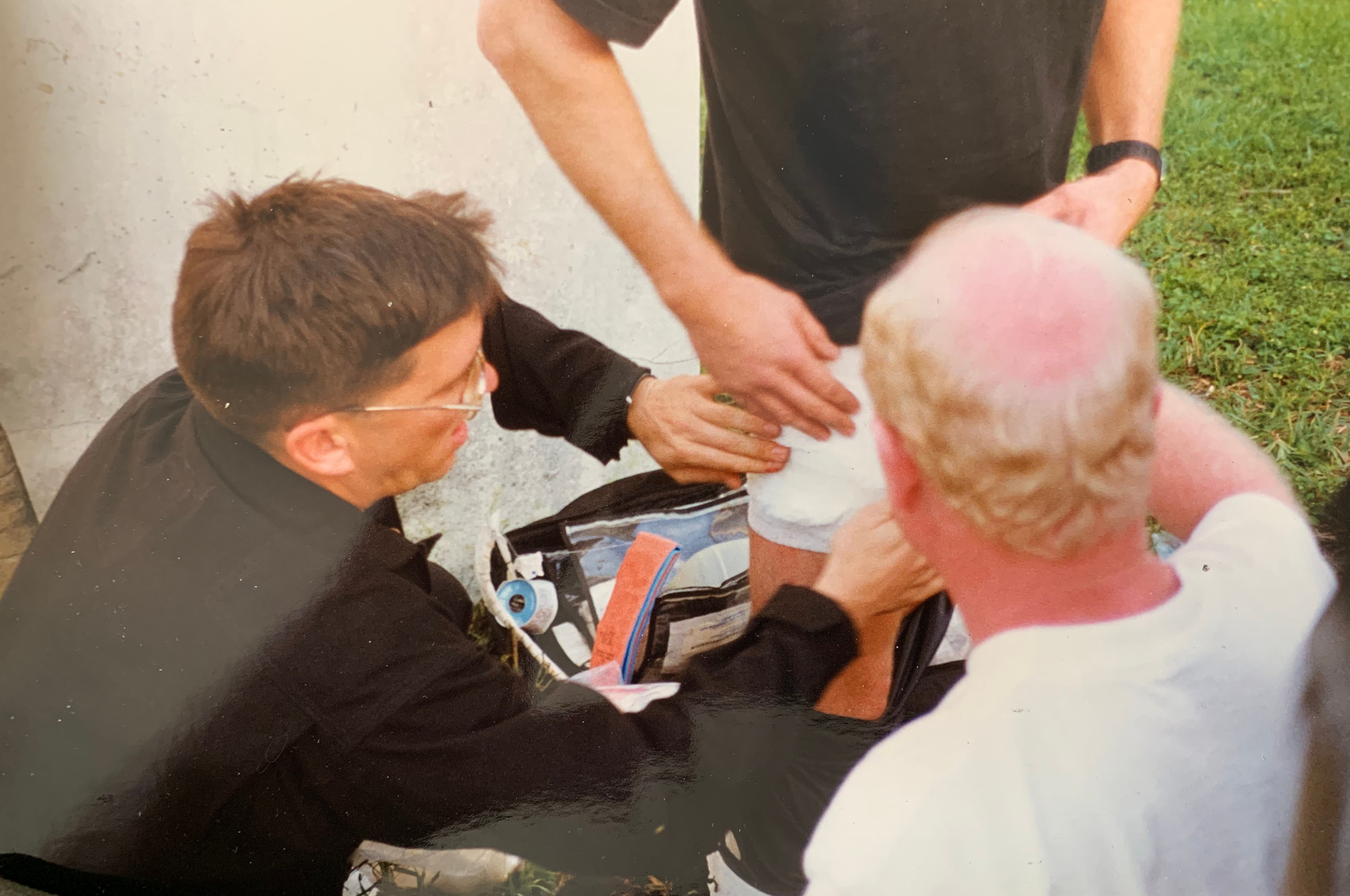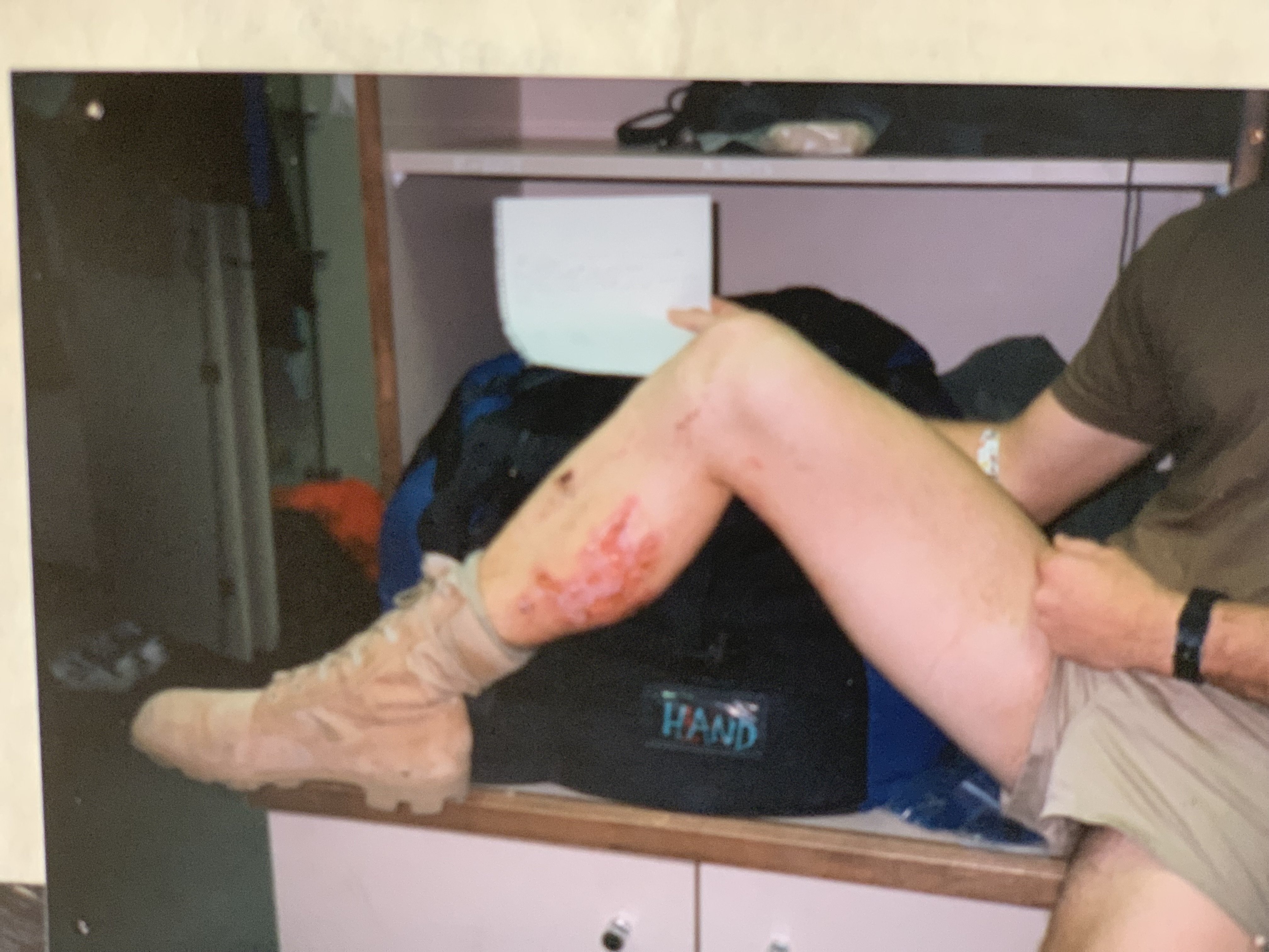 Shocked, I immediately put my arm around his shoulders and, with a much more humane tone, I told him, “Here, take it easy Marcos… let’s have a seat; it will be alright.” Our troop medic was already on the scene, cutting clothing and bandaging trauma and burns to Mos, mostly to his legs.