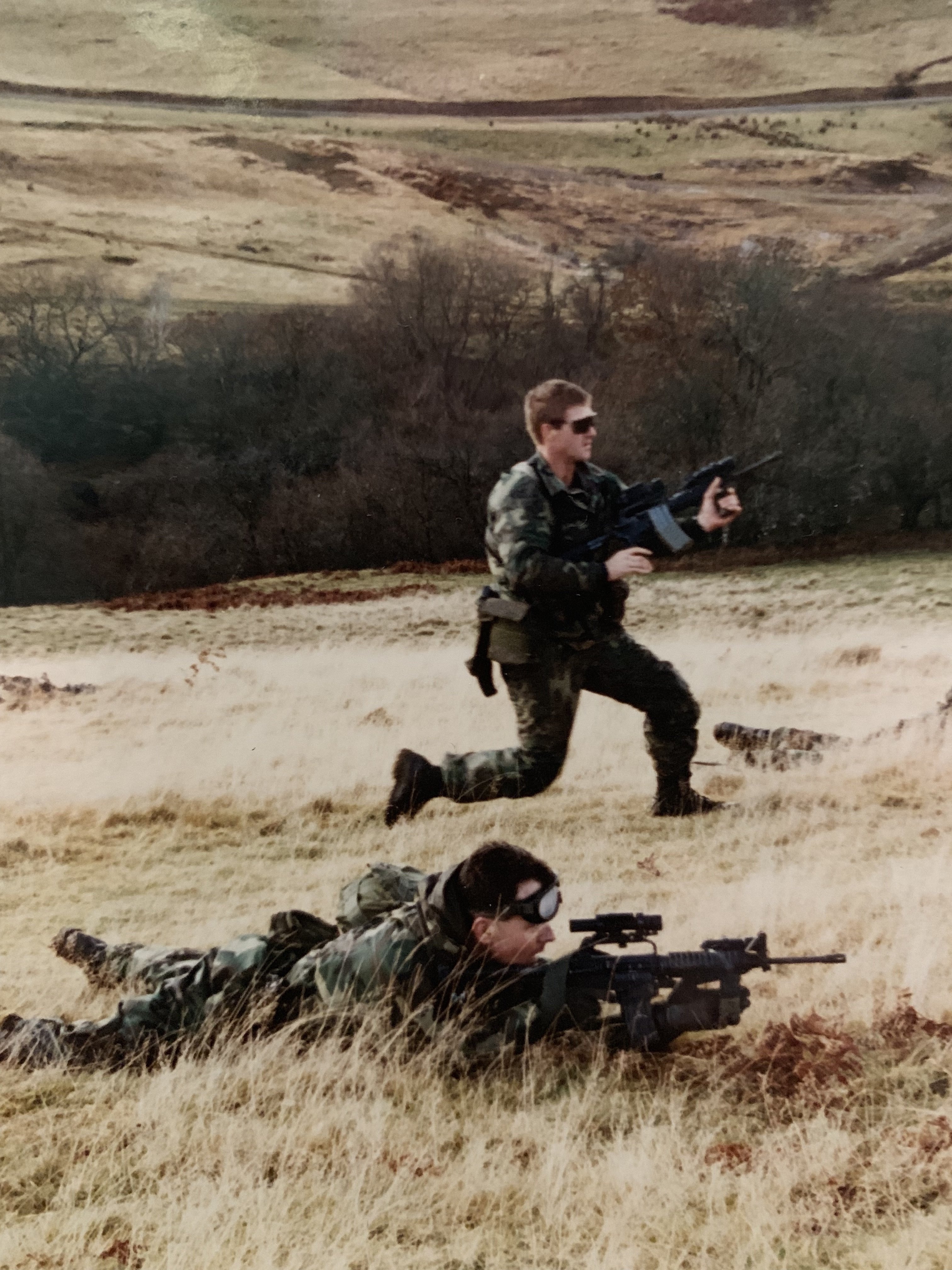 Moses (running) and the author training in Hereford, England, with the British 22 Special Air Service Regiment (22 SAS).