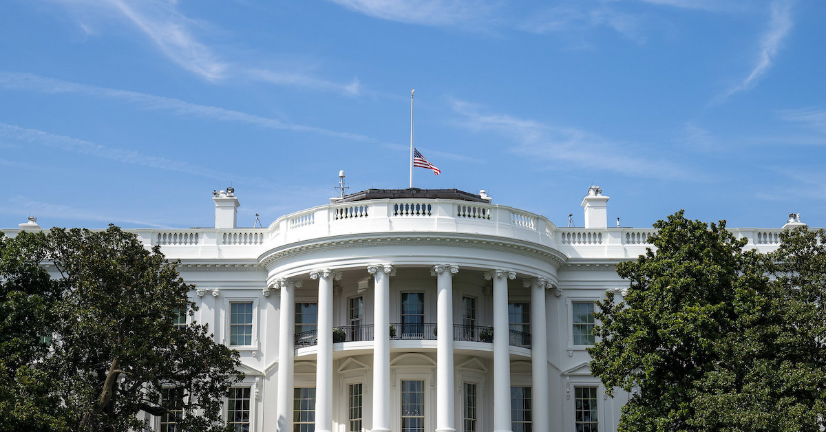 Honoring the seven astronauts who lost their lives aboard the Space Shuttle Columbia on Saturday, Feb. 1, 2003, the American flag was flown at half-staff over the White House Monday, Feb. 3. President George W. Bush has directed the government to fly the flag at half-staff through Wednesday, Feb. 5.