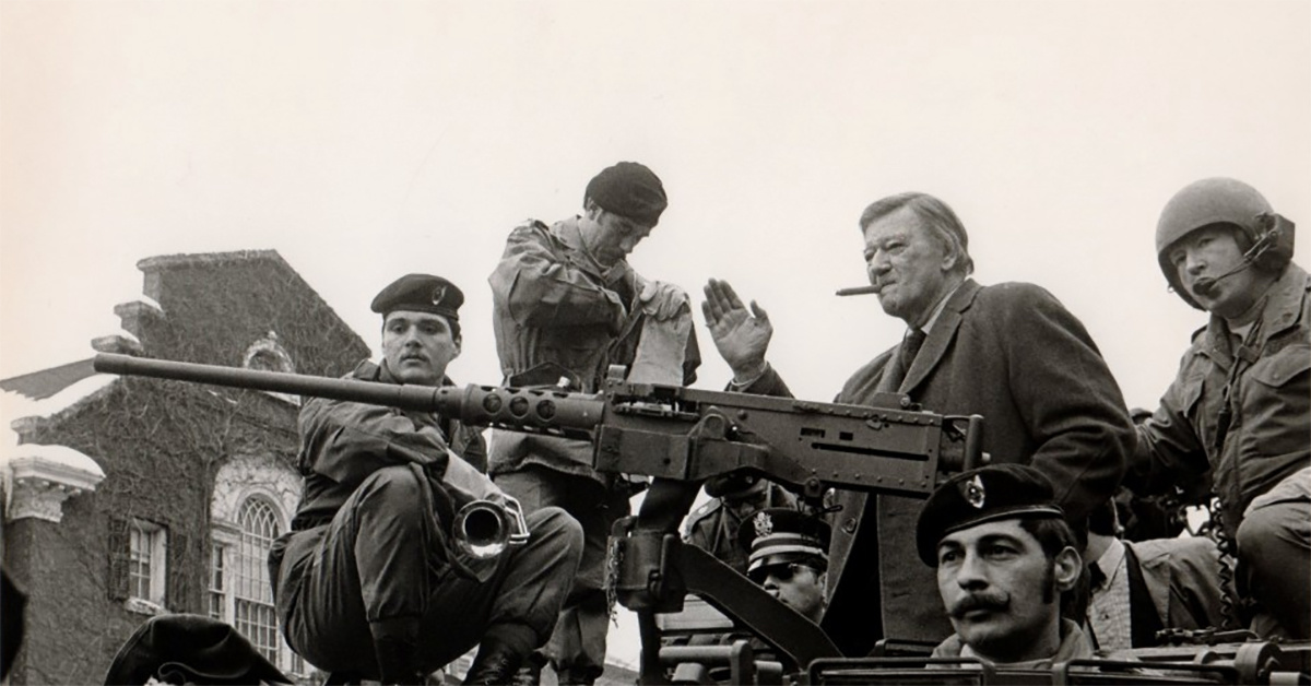 Today, John Wayne and Harvard doesn’t seem like a controversial mixture. In 1974, however, the students at Harvard were very much anti-establishment and John Wayne was a symbol of everything they mistrusted about their country, its history, and its government — especially while the Vietnam War and the draft remained a very recent memory.