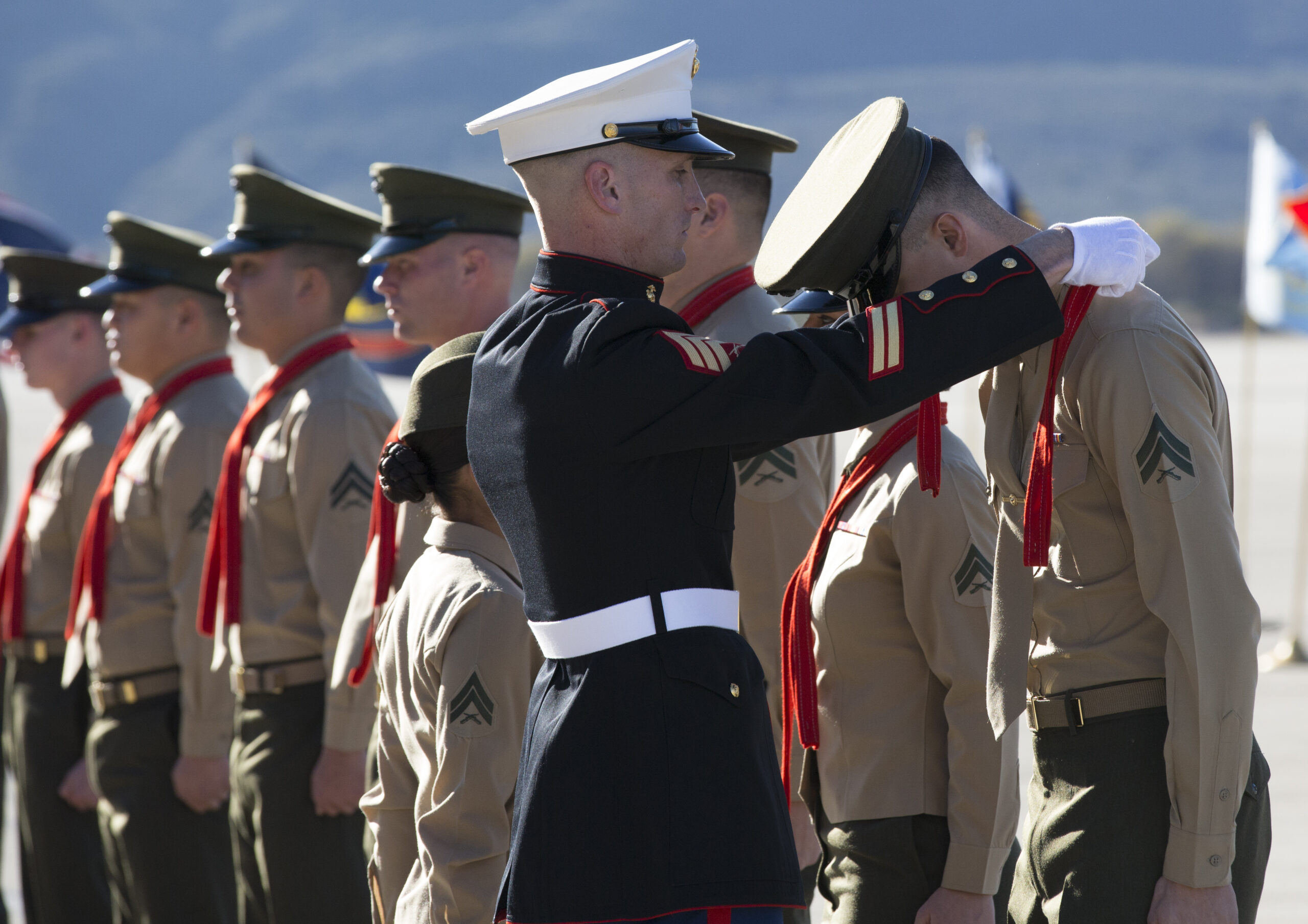 Non-Commissioned Officers (NCOs) in the Marine Corps are the ranks of Corporal and Sergeant. These small unit leaders are given a tremendous amount of authority. They are closest to the troops and the first line of leadership. The Marine Corps places great value on history, tradition and symbolism. Once a Marine becomes an NCO they are authorized to wear a red stripe (known as a blood stripe) along the seam of their dress blue trousers. The blood stripe signifies blood that was shed by Marine officers and NCOs in the Battle of Chapultepec in 1847. The blood stripe is worn by NCOs, Staff NCOs and officers. When you see a Marine in a dress uniform, those with red stripes on their legs are the leaders.