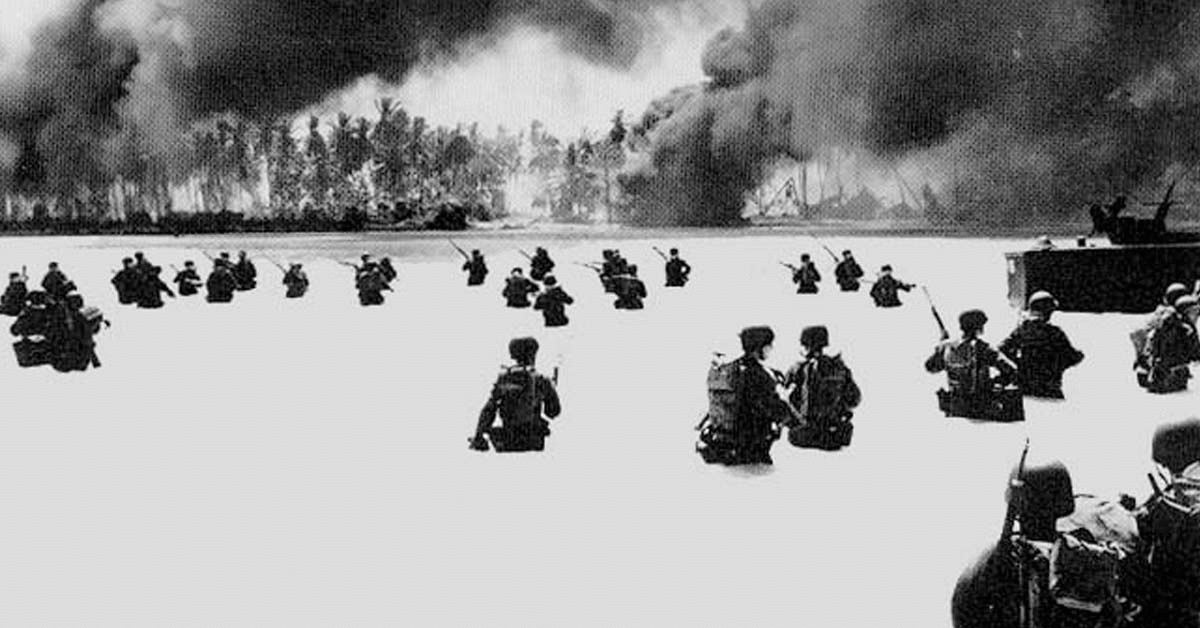 When he earned his second star, he also took command of the 27th Infantry Division, an Army unit that was soon folded into the 2nd Marine Division. The new mixed unit formed the V Amphibious Corps under Marine Corps Maj. Gen. Holland M. “Howlin’ Mad” Smith and its target was the Gilbert Islands. The Marines would attack and capture Tarawa while the Army did the same on Makin. The Marine Corps’ Smith thought the Army’s 6,400-plus troops should be able to overwhelm the 400 defenders and 400 laborers who held the reinforced island.