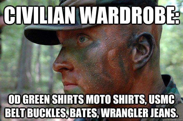 See, in the civilian world there are no uniforms, so you pick your own clothes to wear. Cargo pants and shirts are a good starting point when you first get out. You’ll get these at stores rather than exchanges. If the first store doesn’t have anything you like, don’t worry. Where bases only have a couple of different stores with the same tired inventory, civilians live in cities with tons of different shops all selling different merchandise.