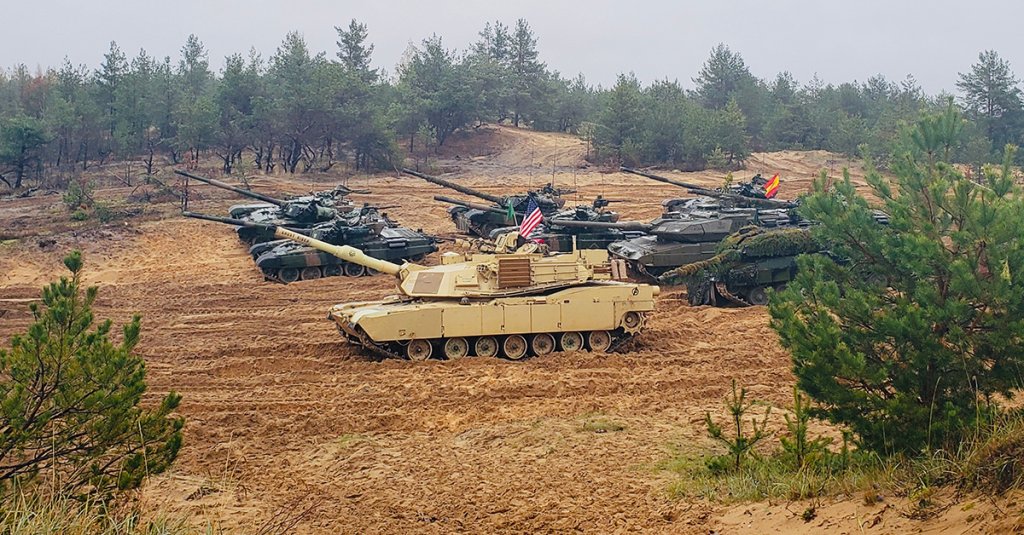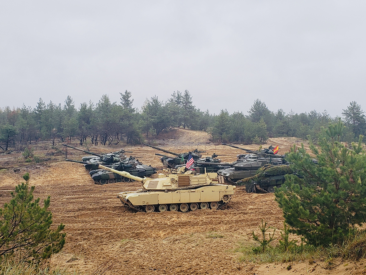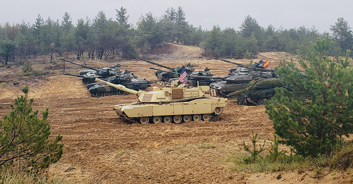 American and European tanks wait for their turn to compete in Operation Iron Tomahawk, a shoot-off between tank crews in Latvia.