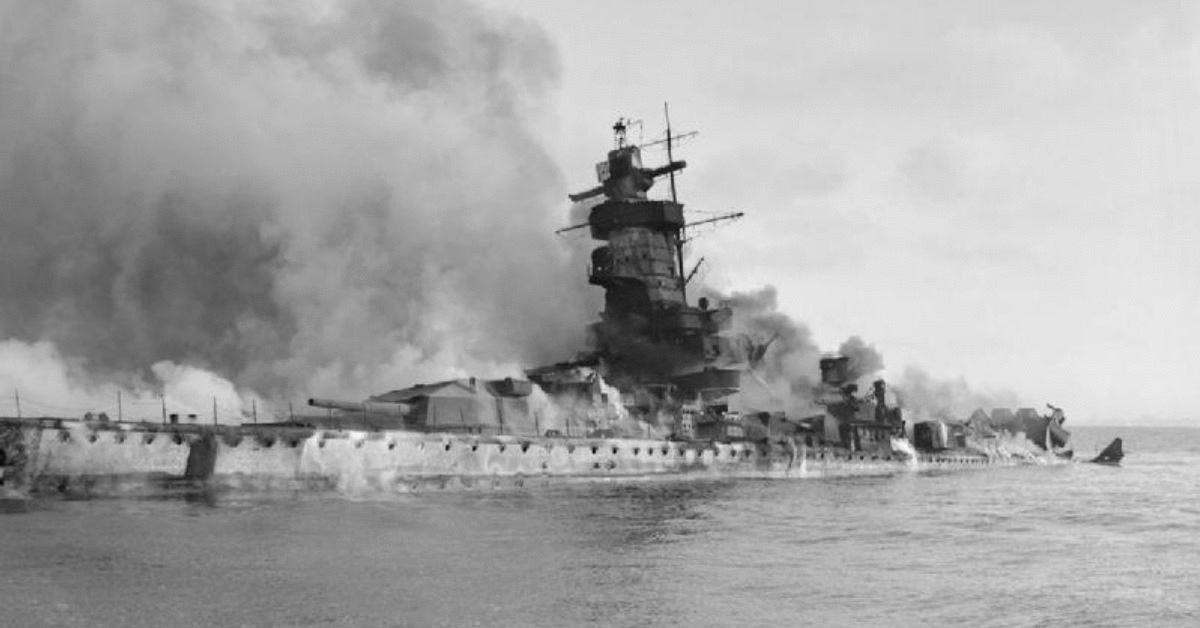 The German battleship Admiral Graf Spee in flames after being scuttled in the River Plate Estuary off Montevideo, Uruguay.