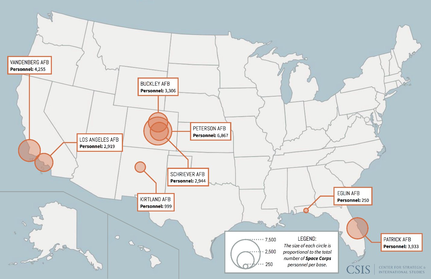 Space Force personnel will be located primarily in three states; California, Colorado and Florida.