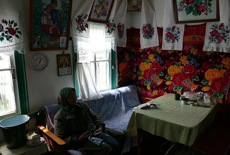 The Chernobyl Spirit Company includes this image of a “self settler” in her home in the Chernobyl area on their website explaining their process.