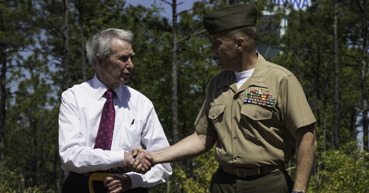 In April, 2018, Col. Michael Scalise, Deputy Commander of MCI East, Camp Lejeune, met with Representative Walter Jones to plant Longleaf Pine Seedlings at Stones Creek Game Land. The Longleaf tree is a favorite of the red-cockaded woodpecker, a species that has made nests under the protection of the Marine Corps for generations. Camp Lejeune shares land with a nature preserve that further protects the woodpecker and other endangered species alike.