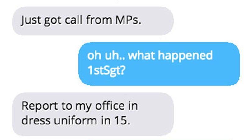 Here are nine messages you probably never want to see coming from the phone number of the First Sergeant