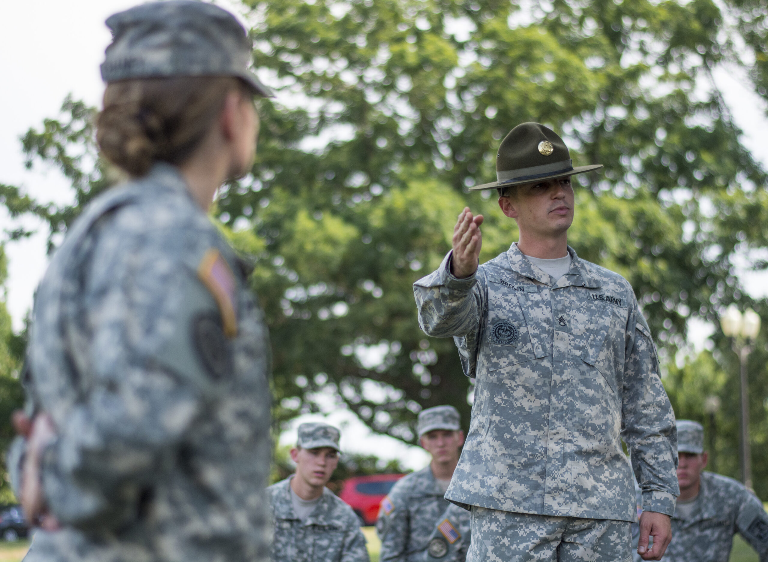 When the knife hand is employed as a direction indicator it’s not done in a casual manner such as “The office you are looking for is over there.” Negative. It’s done with an assertive and emphatic manner. When general directions are given, they are also peppered with military lingo. “Maintain your current heading for three clicks on the MSR and bear left at the intersection.” Roger that. The confident delivery leaves little room to question if the directions are correct. Most of the time when the knife hand is used as a direction indicator it is accompanied with corrective verbal commands. “Get off the grass!” Not only do you know to change your behavior, but you are also given the specified path to follow.
